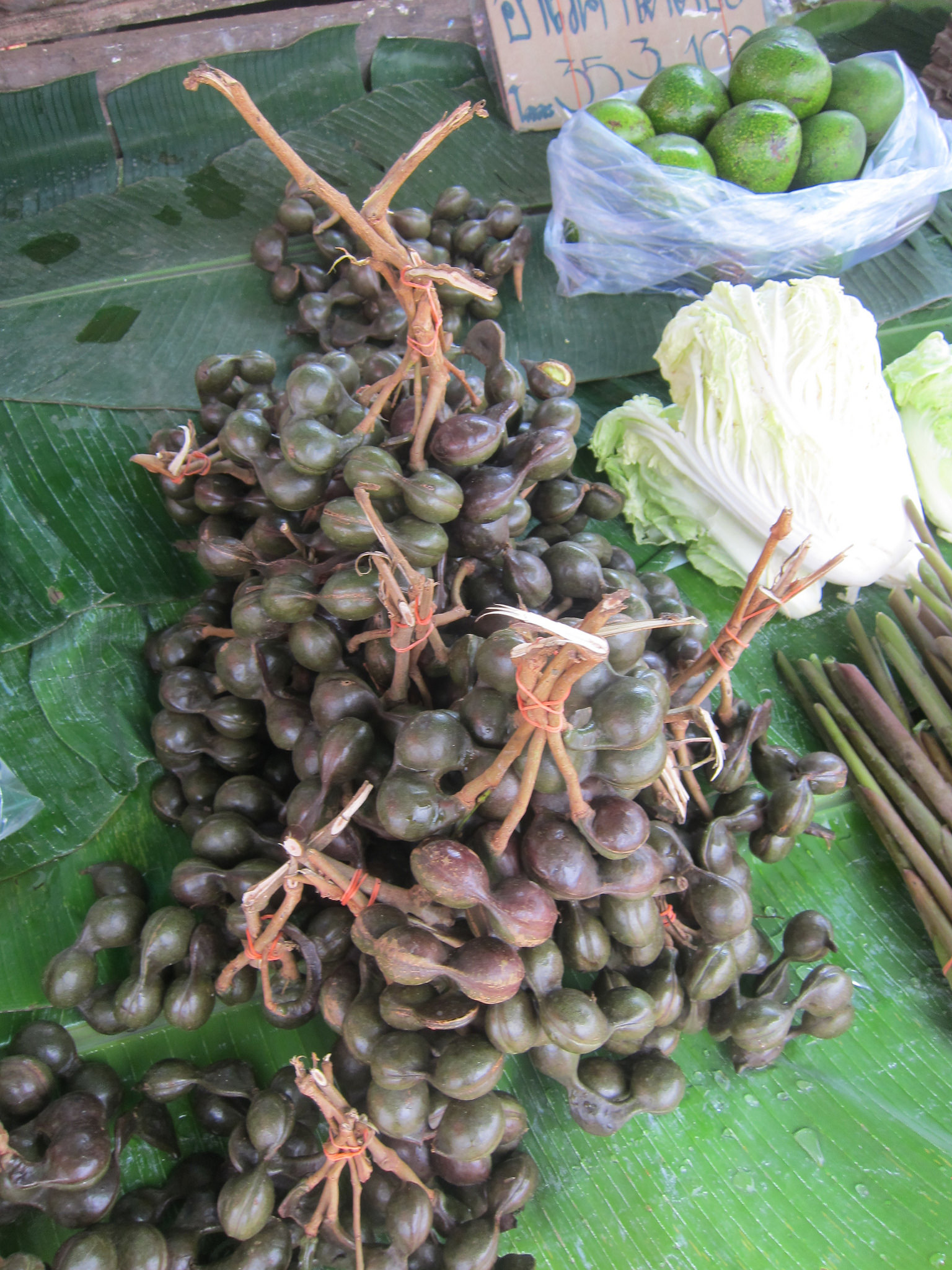 The djenkol tree, Archidendron jiringa, is a member of the Fabaceae family, which is commonly known as the peas and beans family. I’ve written about other Fabaceaes before, such as the Darling pea and drunken sheep and the fish killer Derris, so it’s not too much of a stretch to think that djenkol could be up to no good as well. Growing in large pods, the djenkol bean goes by many names – djenkol, jering, and da nyin thee, to name a few – and is an important food source and delicacy in Indonesia, Malaysia, Thailand, and Burma. They are sold throughout the year in open markets, and eaten raw, fried, or roasted. Opening or crushing the bean, however, emits a sulfurous odor. It’s faint, but definitely unpleasant. What’s even worse is that eating just one bean gives you the breath of rotten eggs. And then when nature calls, your urine smells equally bad, as a reminder of what you ate, in case you forgot. Did I mention it was a delicacy?