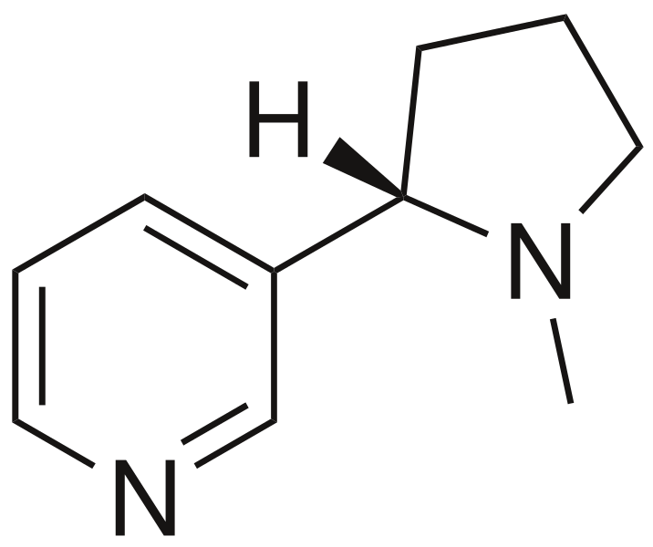 Nicotine is an agonist of the nicotinic acetylcholine receptor (nAChRs), with primary action on the parasympathetic nervous system (PNS). Nicotinic acetylcholine receptors are ligand-gated ion channels found not only in the PNS, but also in the central nervous system (CNS) and skeletal muscle, with affinity for acetylcholine and nicotine. When bound with an agonist, such as nicotine, the “open” state of the ion-channel is stabilized, allowing cations like potassium, sodium, and calcium to flow freely. When stimulated, the PNS is responsible for the so-called “rest and digest” and “feed and breed” actions. An easy way to remember the pathological effects is through the mnemonic SLUDGE: Salivation, Lacrimation, Urination, Defecation (or sometimes seen as Diaphoresis, aka sweating), GI upset, and Emesis. At very high, and lethal doses, the CNS and skeletal muscle effects kick in, resulting in a curare-like paralysis of the diaphragm and death. It’s not pretty. Ask King Joffrey about it.
